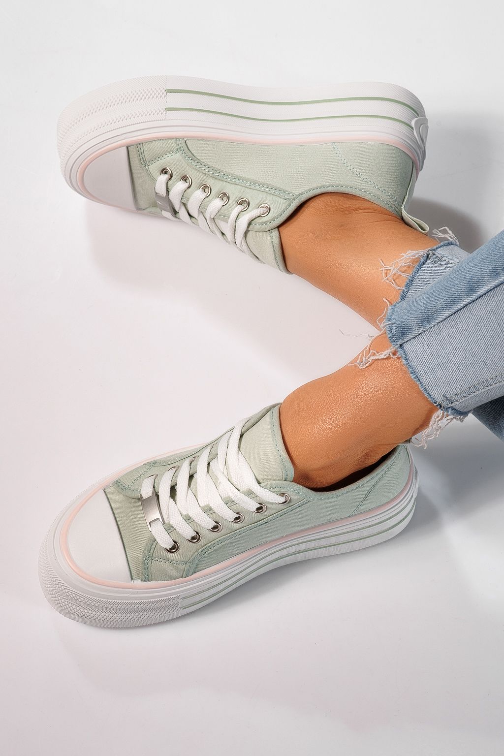 Adidasi dama verzi din material textil Sophia #24726