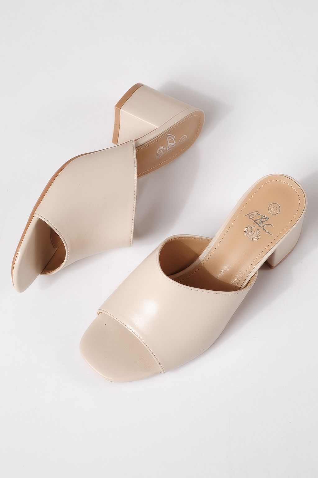 Papuci cu toc dama bej din piele ecologica Azelia #24746