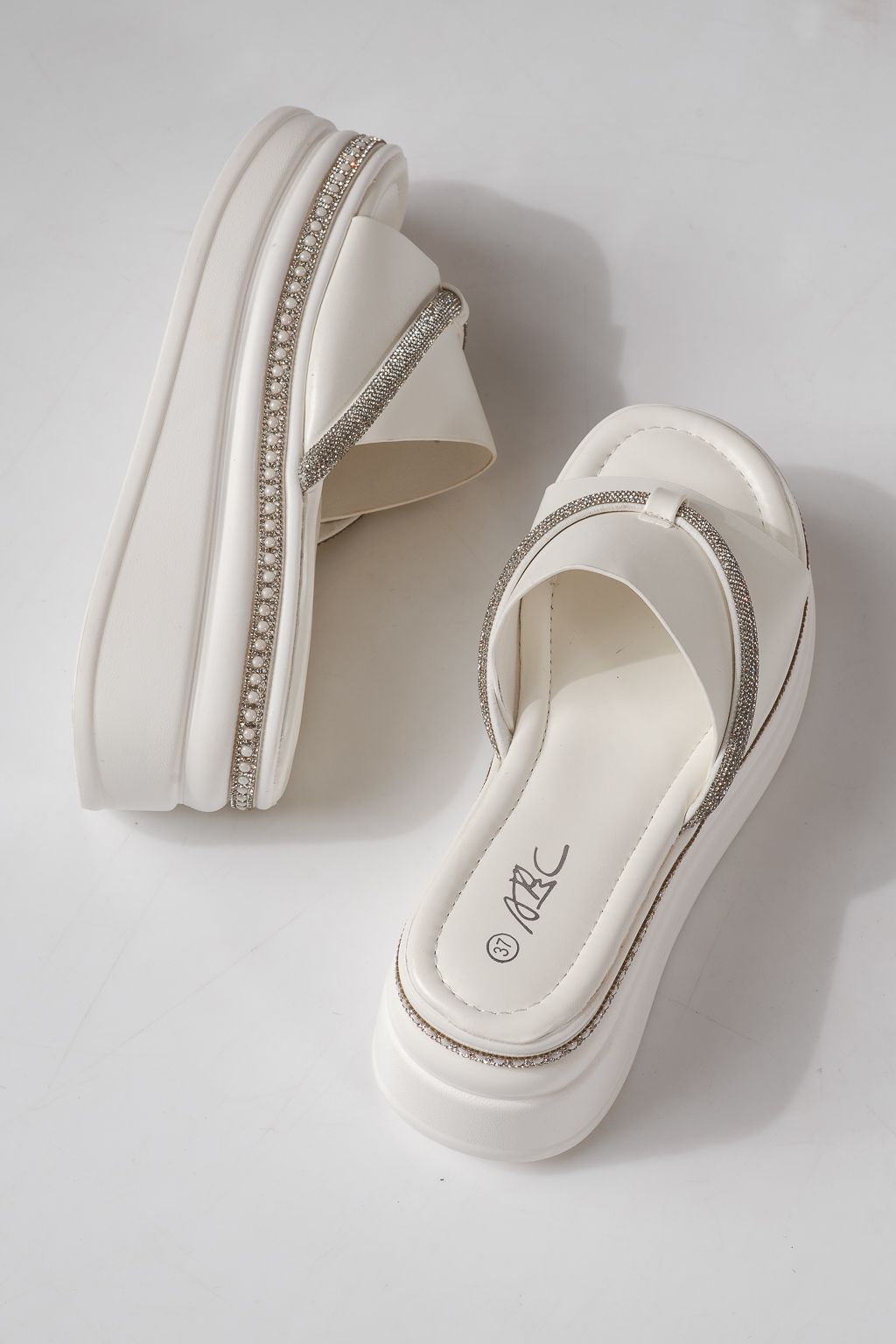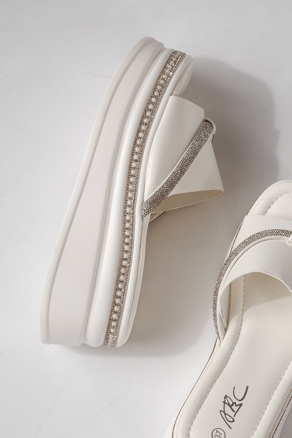 Papuci cu platforma dama albi din piele ecologica Belina #24749