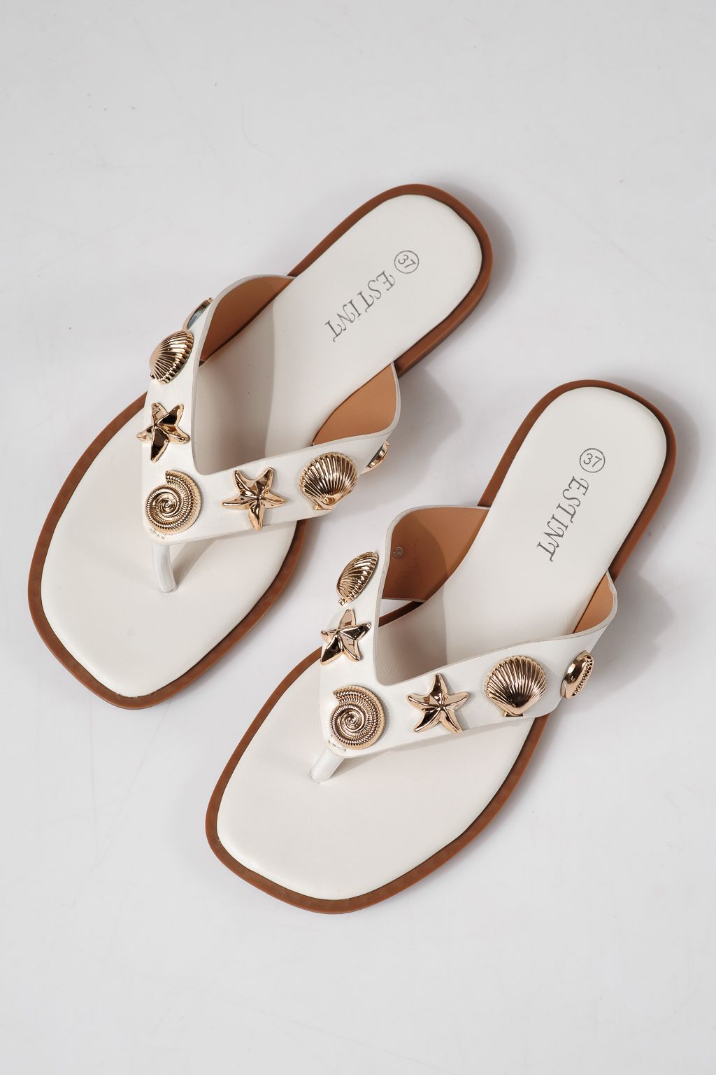 Papuci dama albi din piele ecologica Zelia #24800