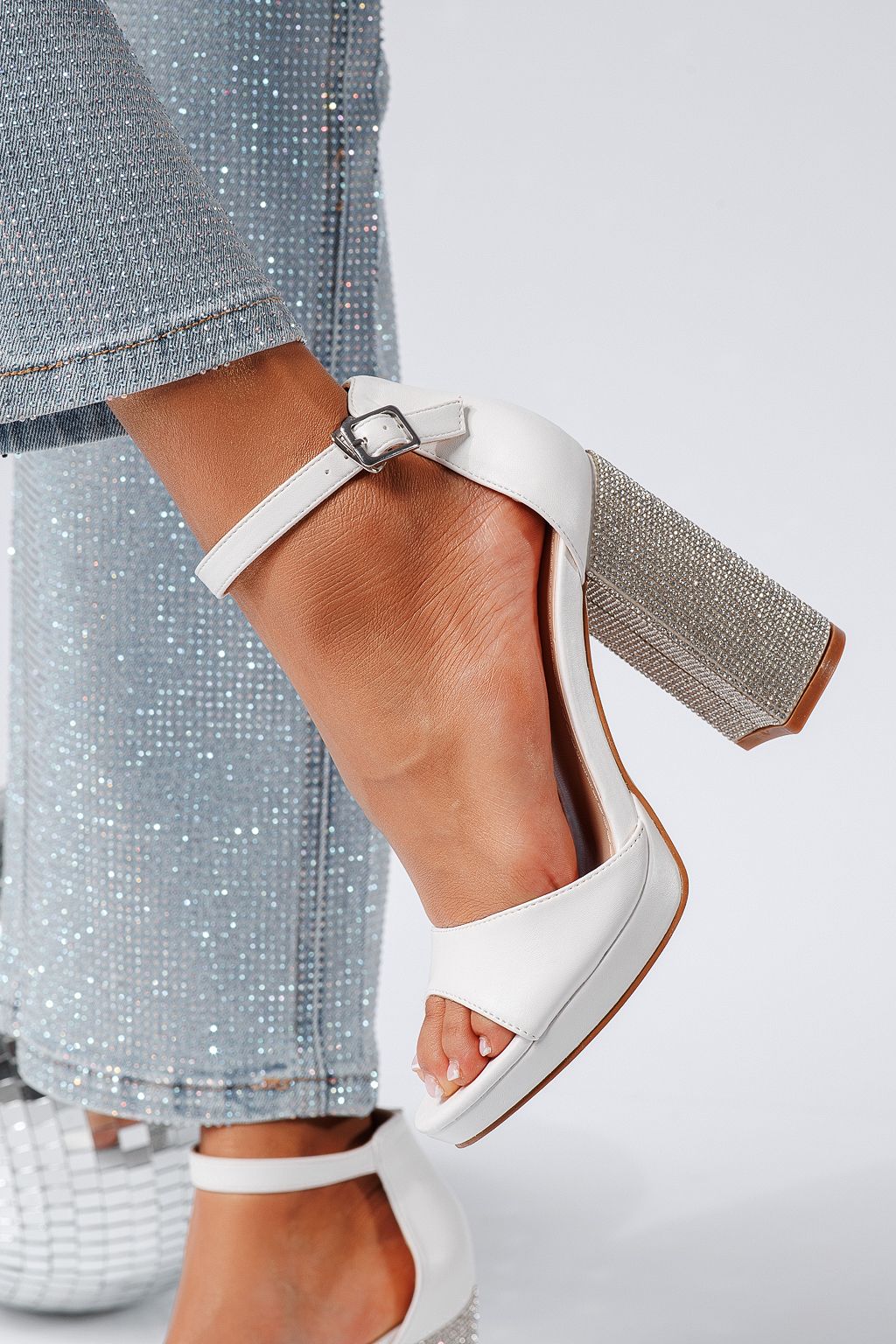 Prima pagină Incaltaminte dama Sandale Dama Sandale cu toc elegante Sandale cu toc dama albe din piele ecologica Evelyn #24808