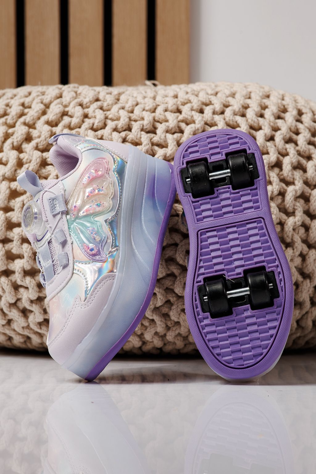 Adidasi cu role mov din material textil Helys #24408