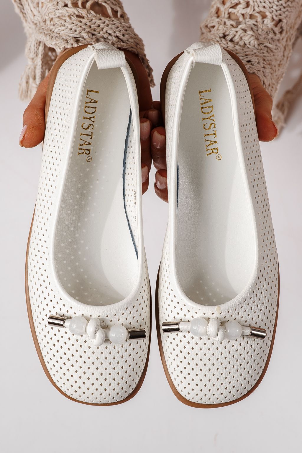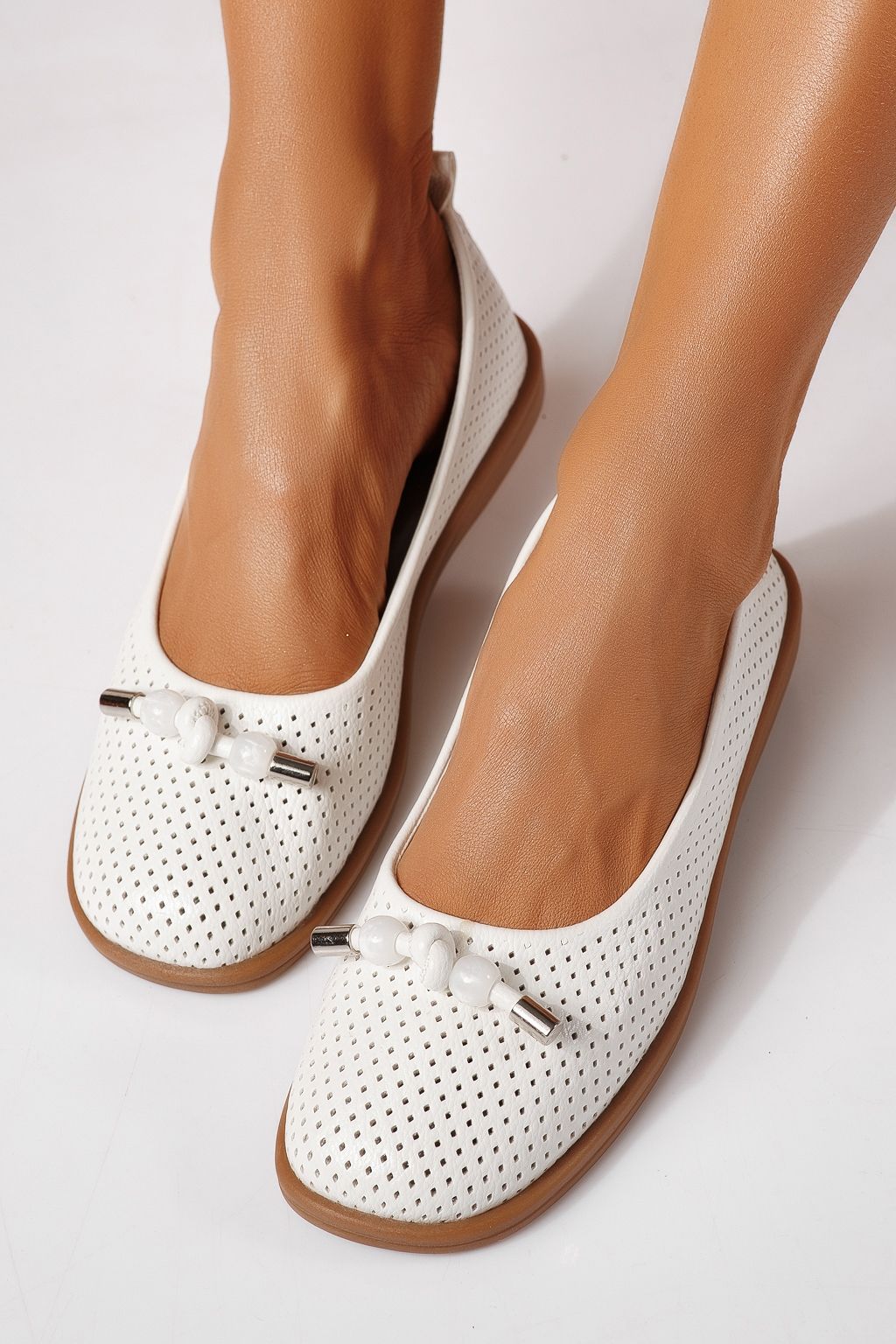 Balerini dama albi din piele ecologica Aeliana #24873