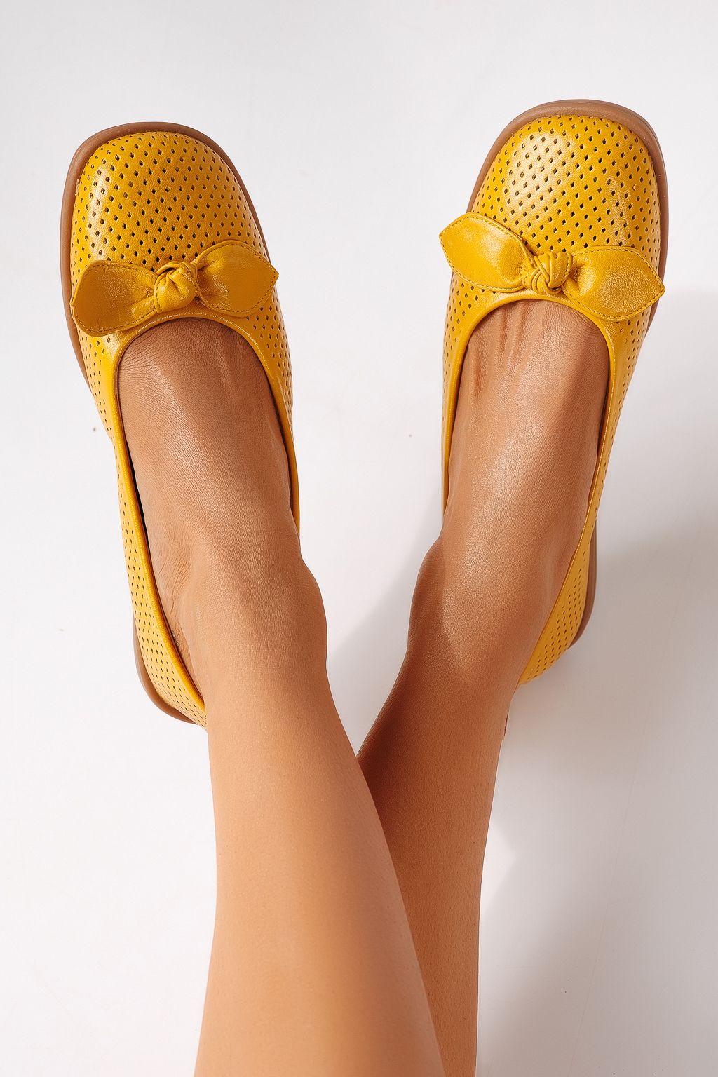 Balerini dama galbeni din piele ecologica Amaris #24878