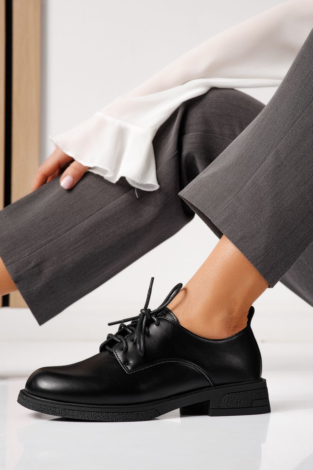 Pantofi casual dama negri din piele ecologica Bellamy #24892