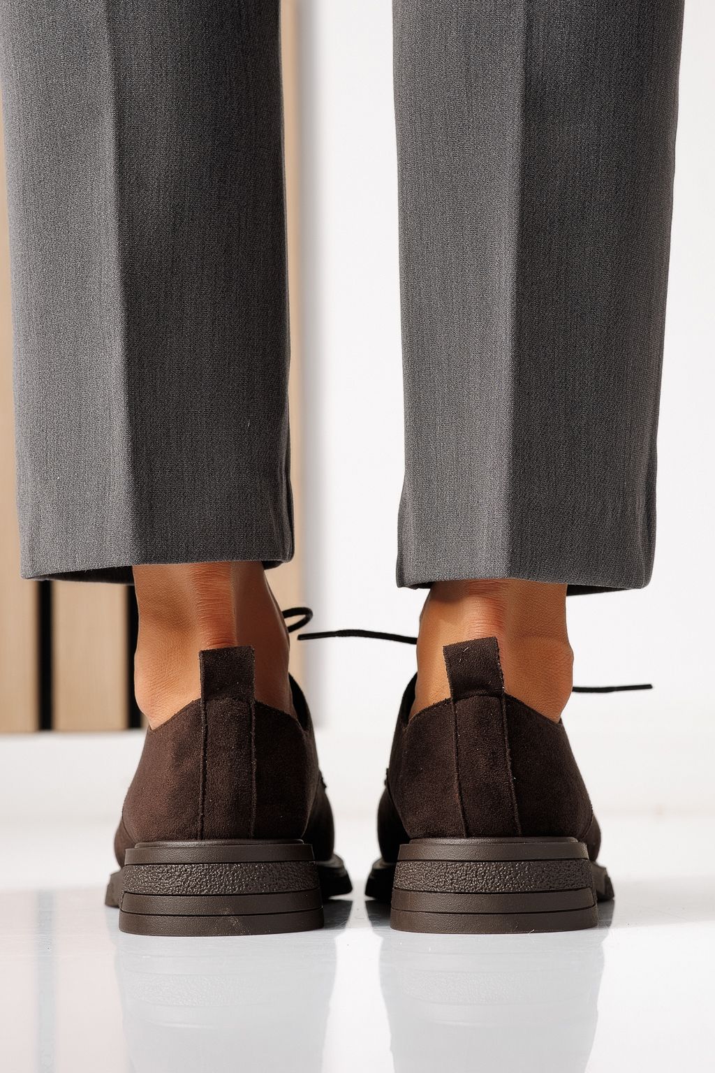 Pantofi casual dama maro din piele ecologica intoarsa Bellamy #24893