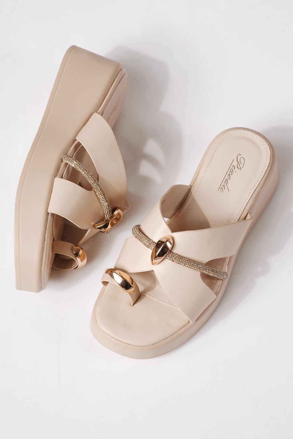 Papuci cu platforma dama bej din piele ecologica Keiko #24980