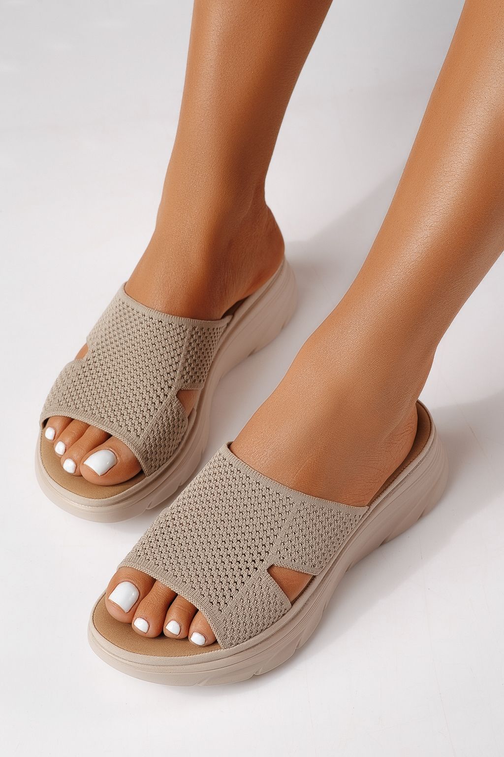 Papuci dama bej din material textil Iria #25029