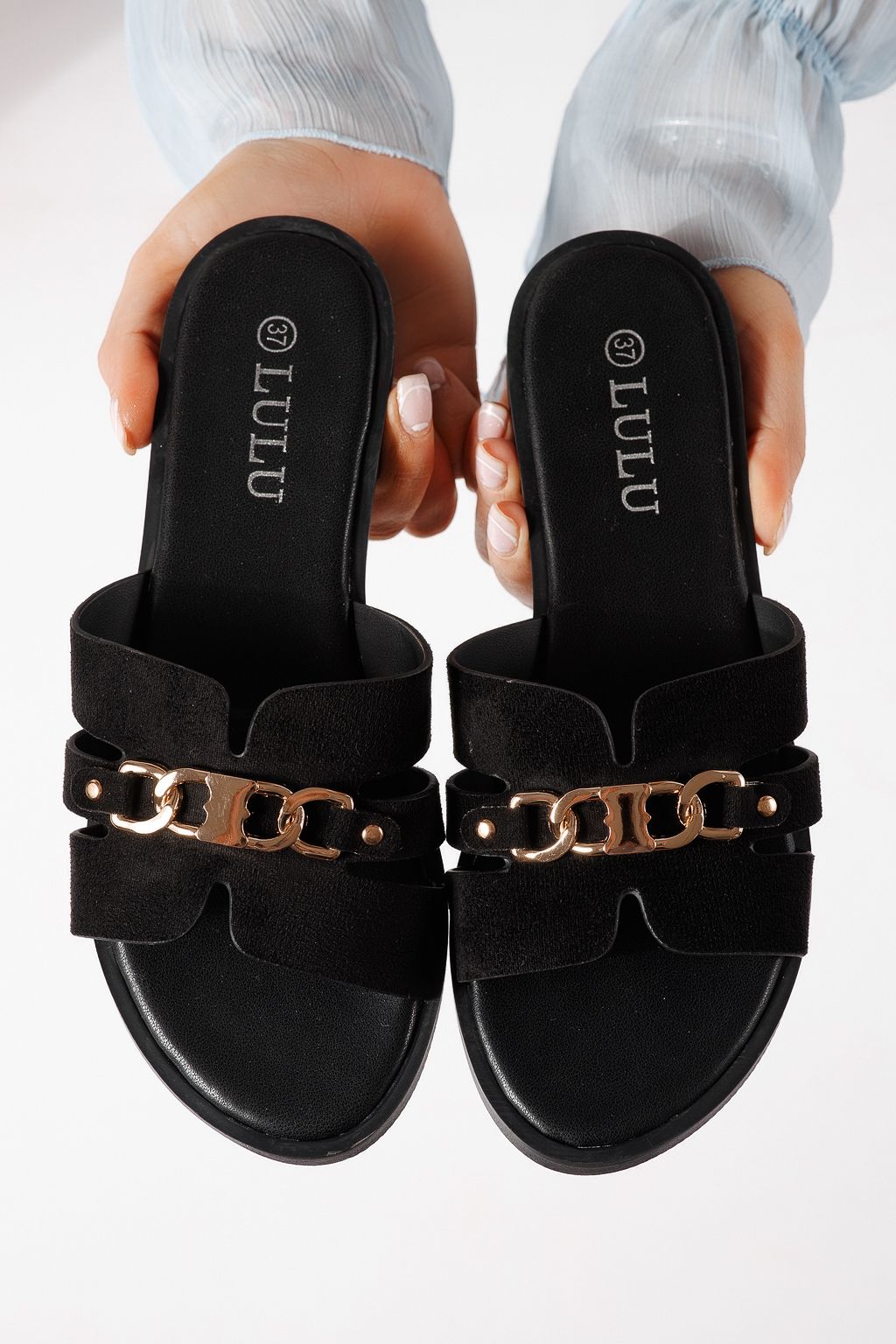 Prima pagină Incaltaminte dama Sandale Dama Papuci / Slapi / Saboti Papuci dama negri din piele ecologica intoarsa Pilar #25051