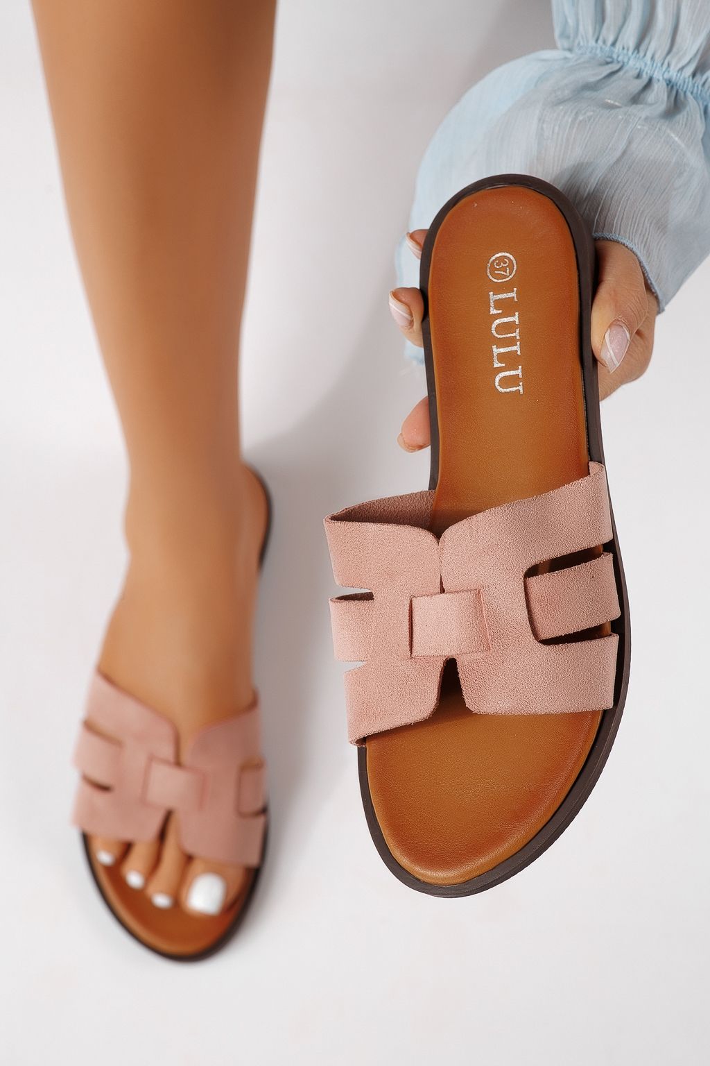 Papuci dama roz din piele ecologica intoarsa Odessa #25106