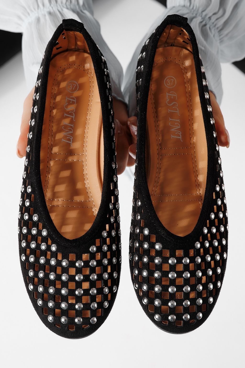 Prima pagină Incaltaminte dama Pantofi Dama Pantofi Casual Dama Balerini dama Balerini dama negri din piele ecologica Diamond #25115