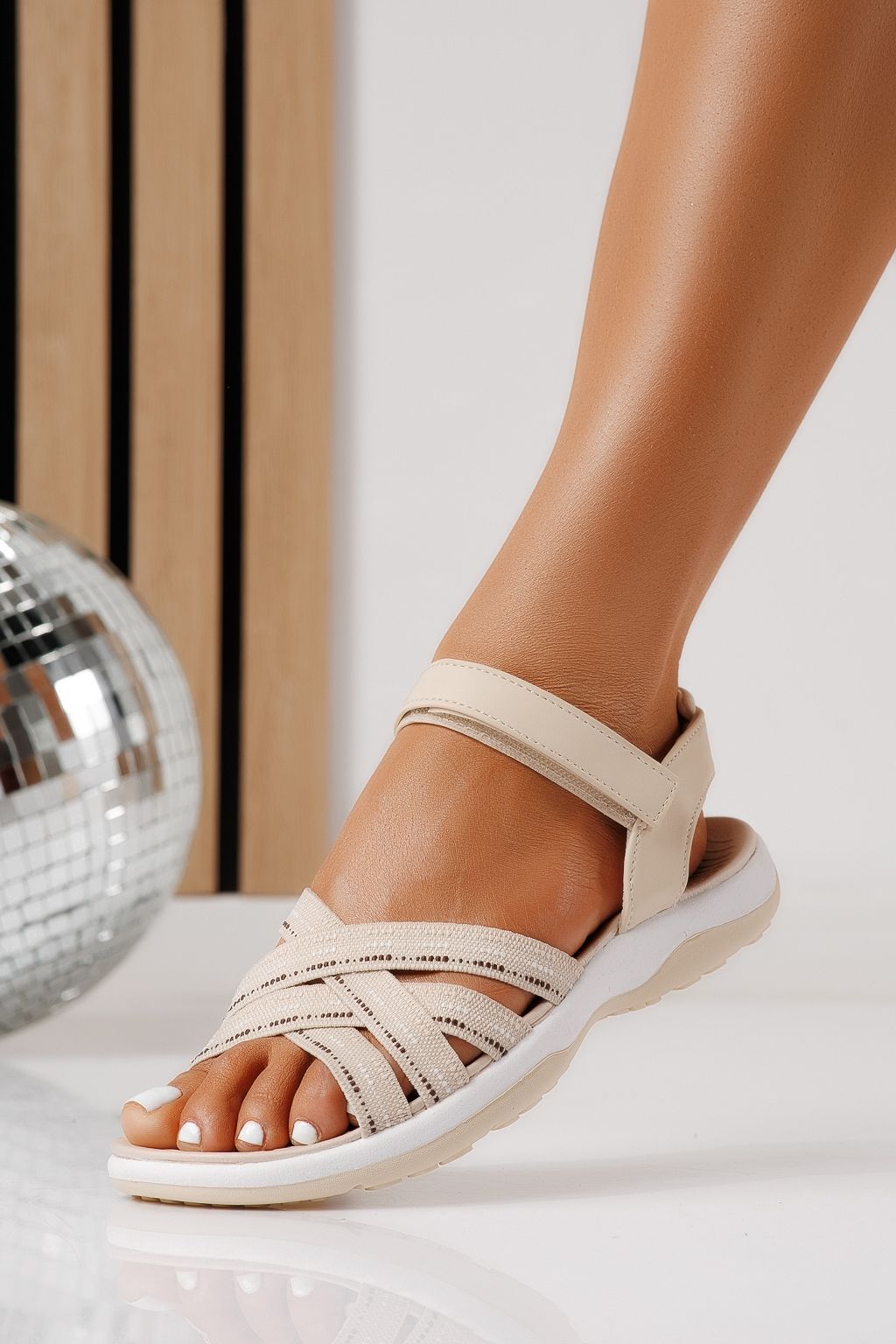Prima pagină Incaltaminte dama Sandale Dama Sandale cu talpa joasa Sandale cu talpa joasa dama bej din material textil Mireya #25138
