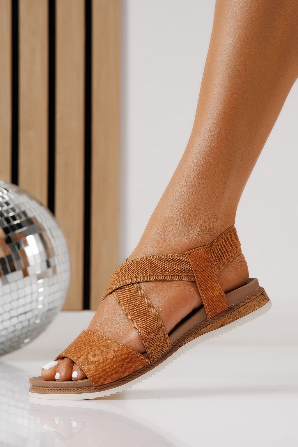 Sandale cu talpa joasa dama maro din piele ecologica Yara #25154