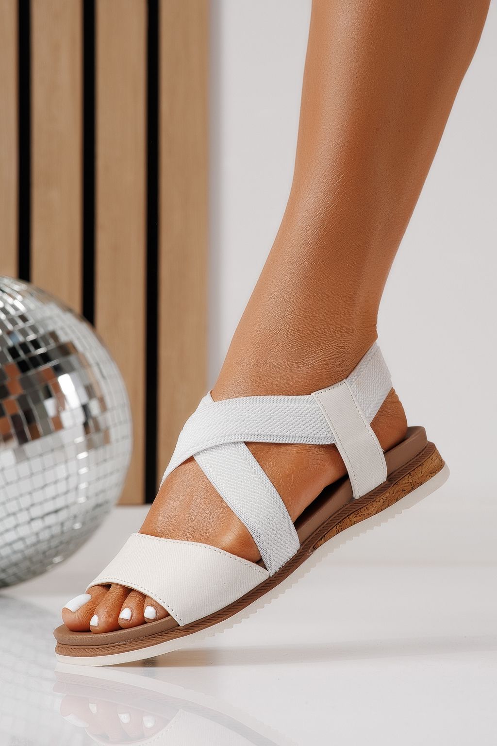 Sandale cu talpa joasa dama albe din piele ecologica Yara #25155