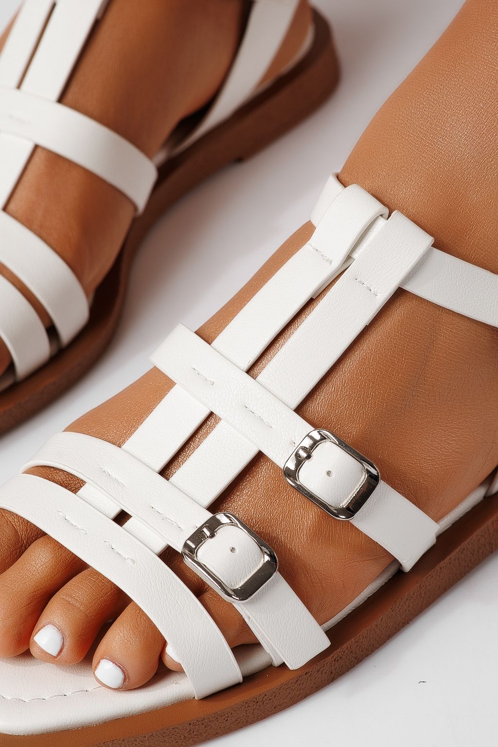 Prima pagină Incaltaminte dama Sandale Dama Sandale cu talpa joasa Sandale cu talpa joasa dama albe din piele ecologica Azura #25164